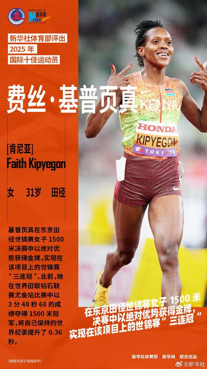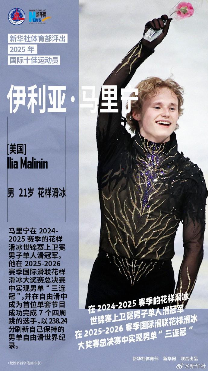 12月28日,新华社体育部评出2025年国际十佳运动员如下(按姓名首字笔画排序):