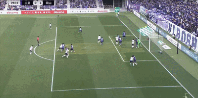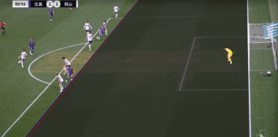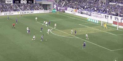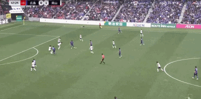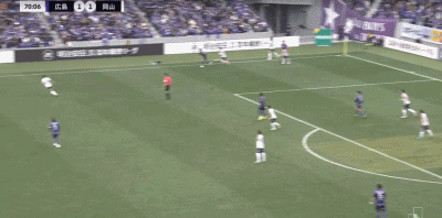 第10分钟,江坂任抽射破门,冈山绿雉1-0领先广岛三箭