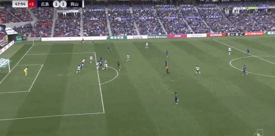 第45+3分钟,扳平比分,热尔曼-良破门,广岛三箭1-1