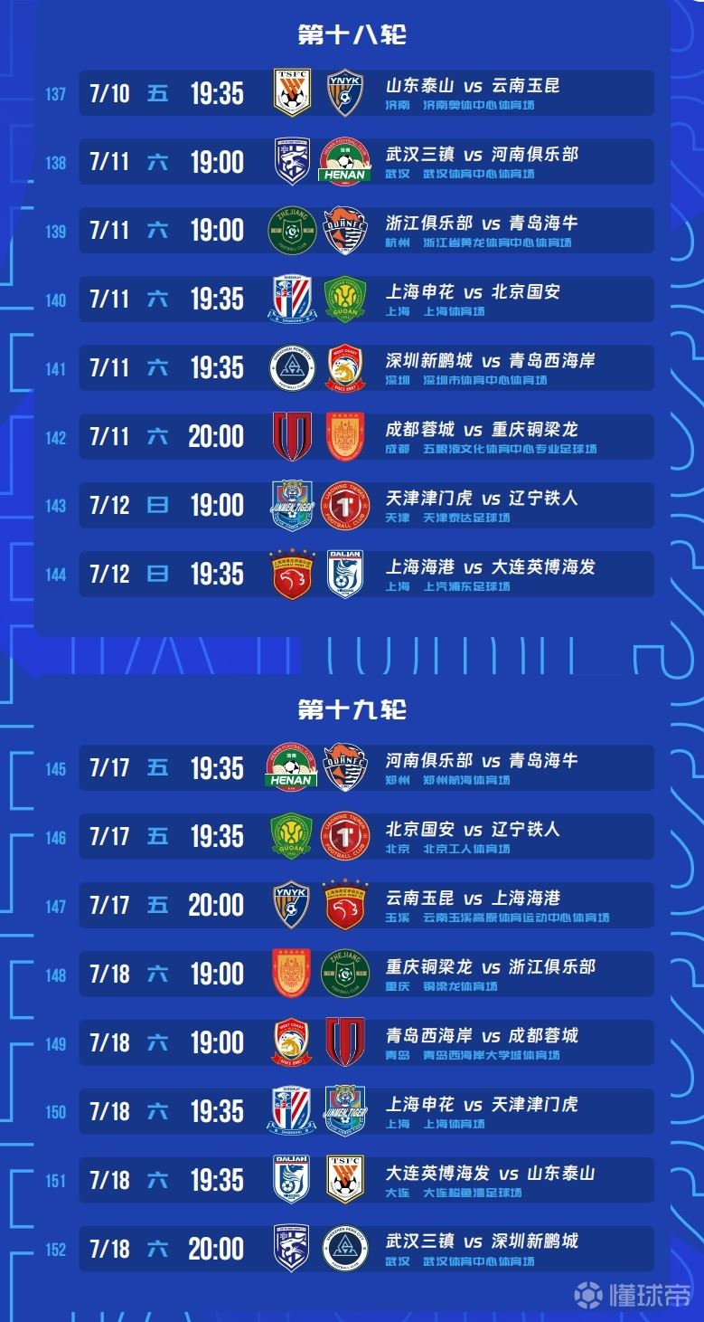 根据赛程安排,海港、申花和山东都是1主3客的赛程,其中卫冕冠军上海海港从第16轮起,将连续做客河南和青岛西海岸,第18轮主场对阵大连英博,第19轮客场对阵云南玉昆。上赛季联赛亚军上海申花,将先后对阵大连英博、浙江队、北京国安和天津津门虎,只有对阵大连英博是在客场。上赛季的足协杯冠军北京国安将迎来魔鬼赛程,在7月4日和7月11日先主后客对阵山东泰山和上海申花。
