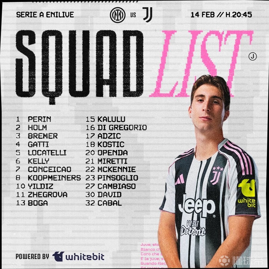 意甲第25轮迎来意大利国家德比,尤文图斯客场挑战国际米兰。赛前尤文公布大名单,伊尔迪兹领衔,米雷蒂、卡卢卢在列。